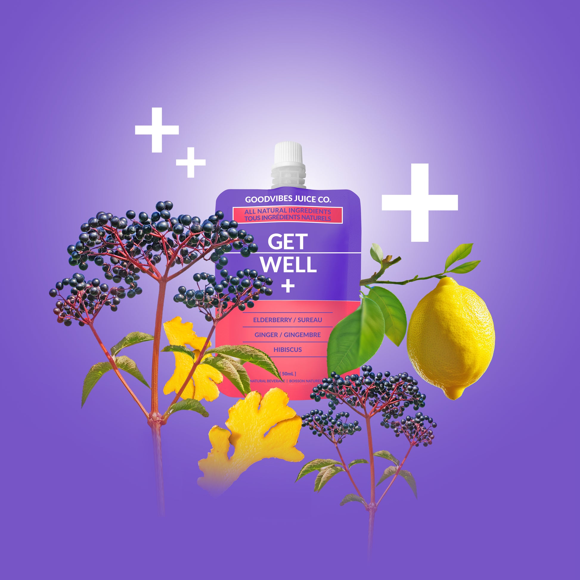 wishing someone well is easy to do with GET WELL and its powerhouse lineup of natural wellness ingredients. featuring elderberry, ginger, hibiscus, lemon, cayenne, and maple GET WELL takes the tradition we started with SICK DAY and mixes it up.